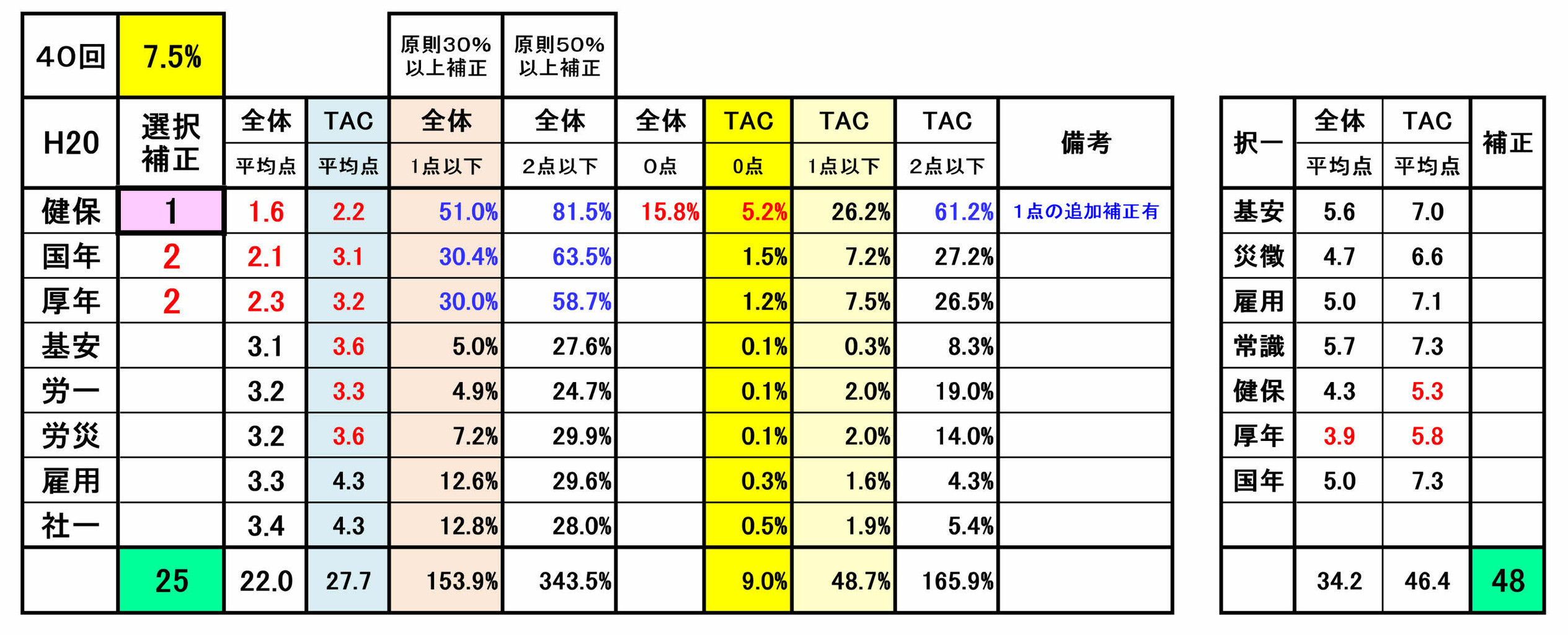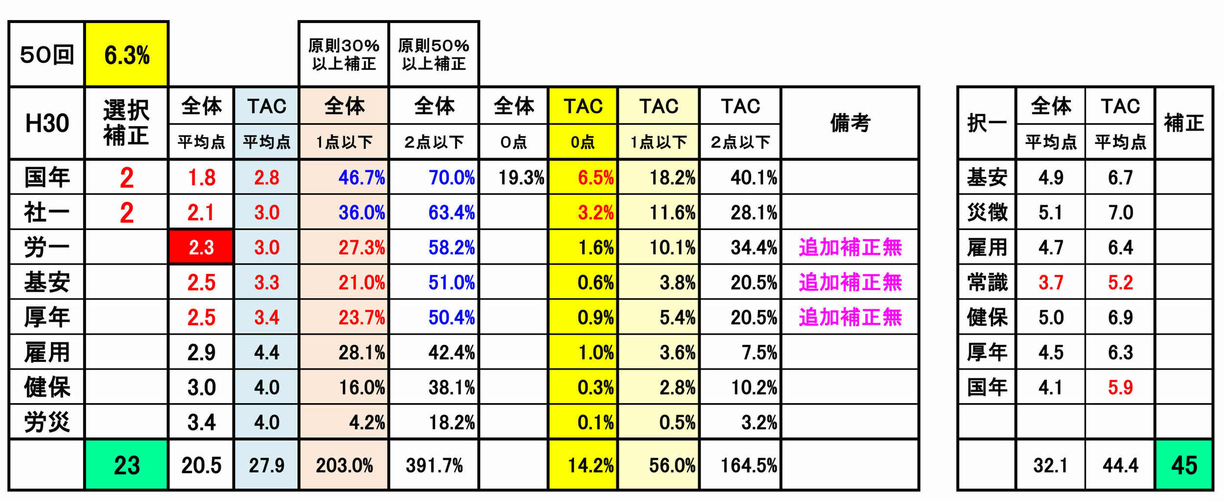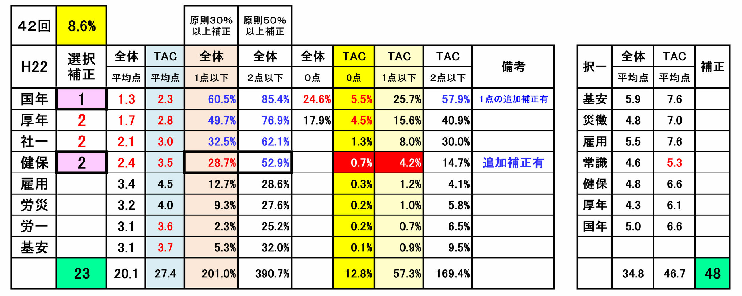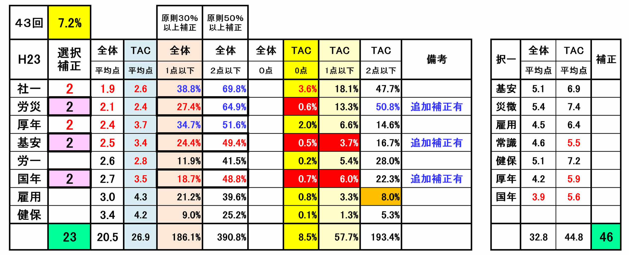 尚、前年第53回の選択式科目補正(例外補正=追加補正)は、過去の補正基準との整合性が著しく損なわれていました。合格という観点からみれば、今回は、受験生にとってはプラス傾向でしたが・・!