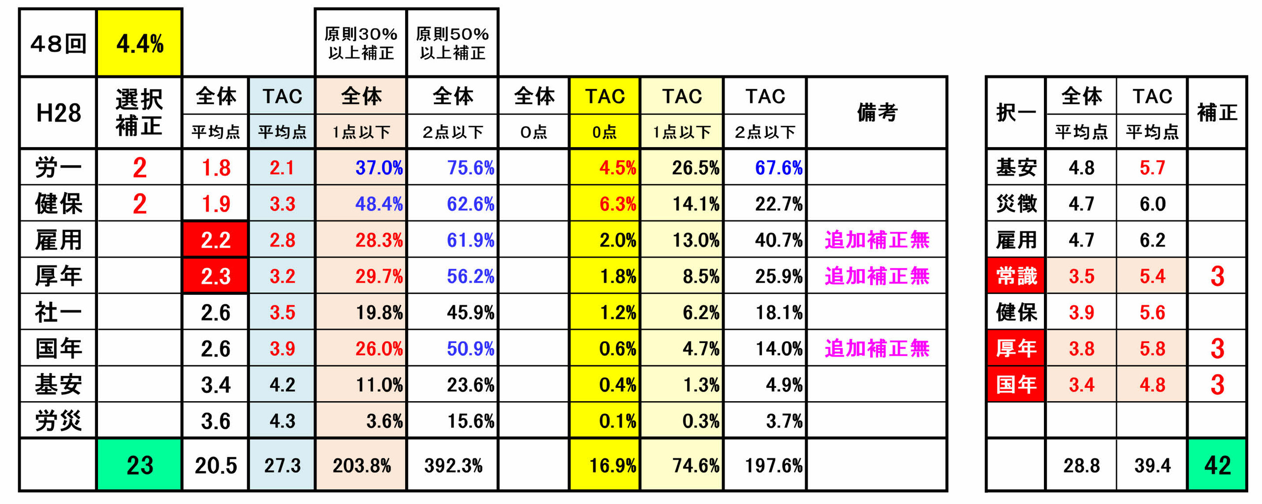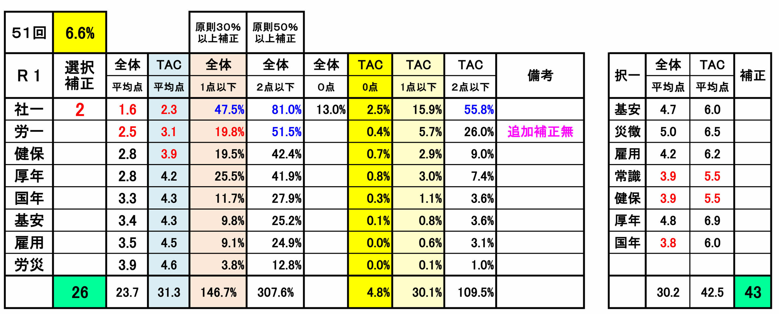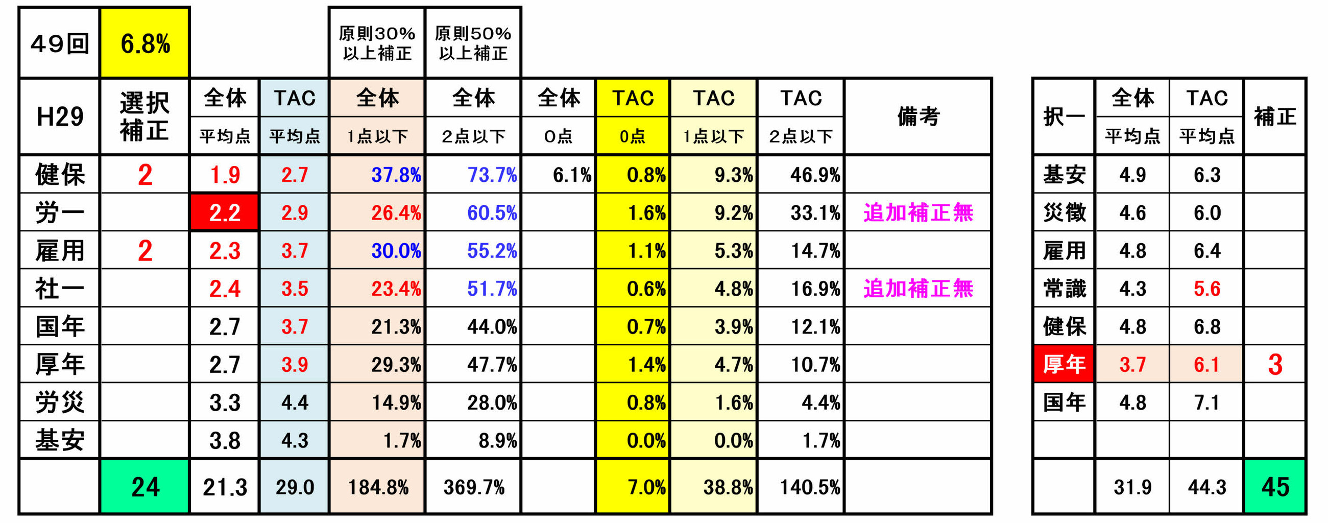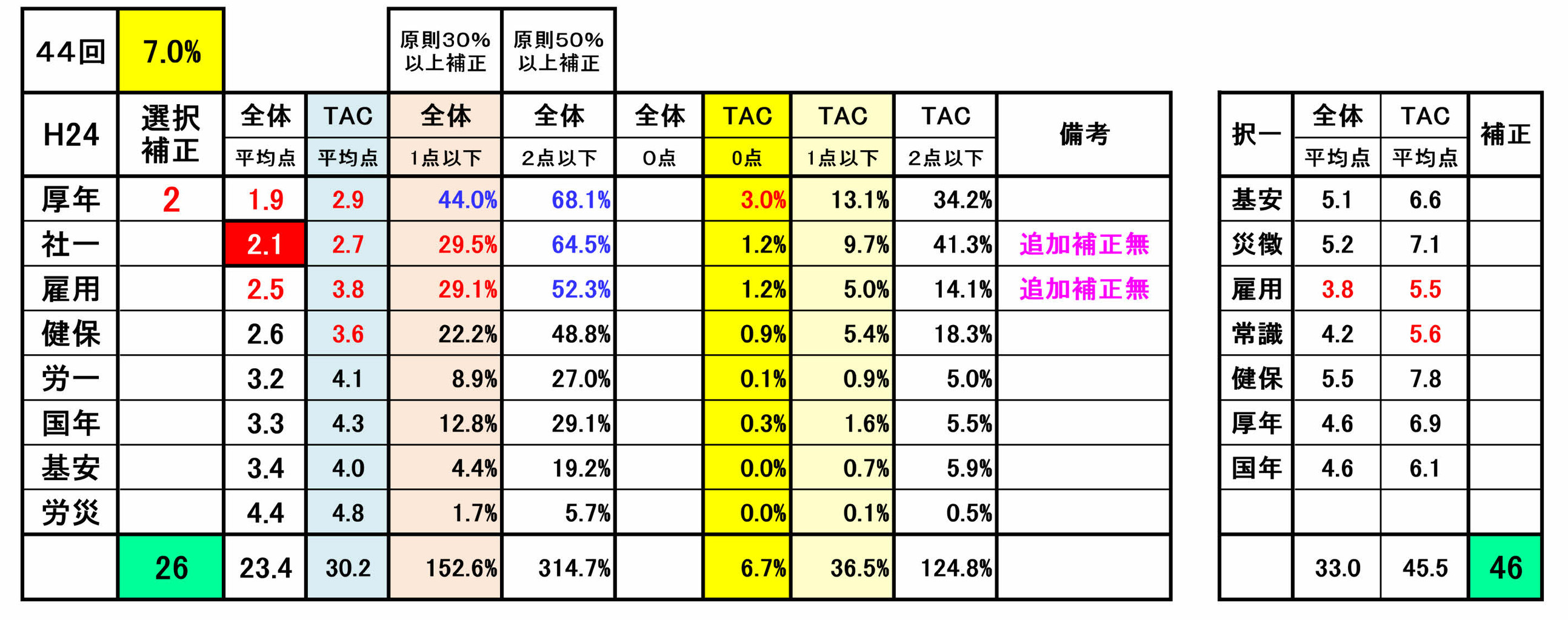尚、前年第53回の選択式科目補正(例外補正=追加補正)は、過去の補正基準との整合性が著しく損なわれていました。合格という観点からみれば、今回は、受験生にとってはプラス傾向でしたが・・!