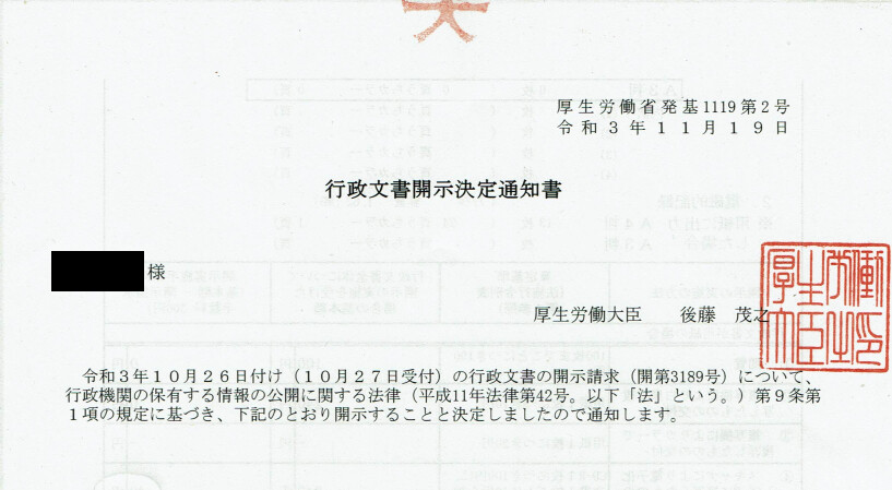 厚労省「一般公開資料」及び「非公開資料=開示請求分」の掲載予定はありません。