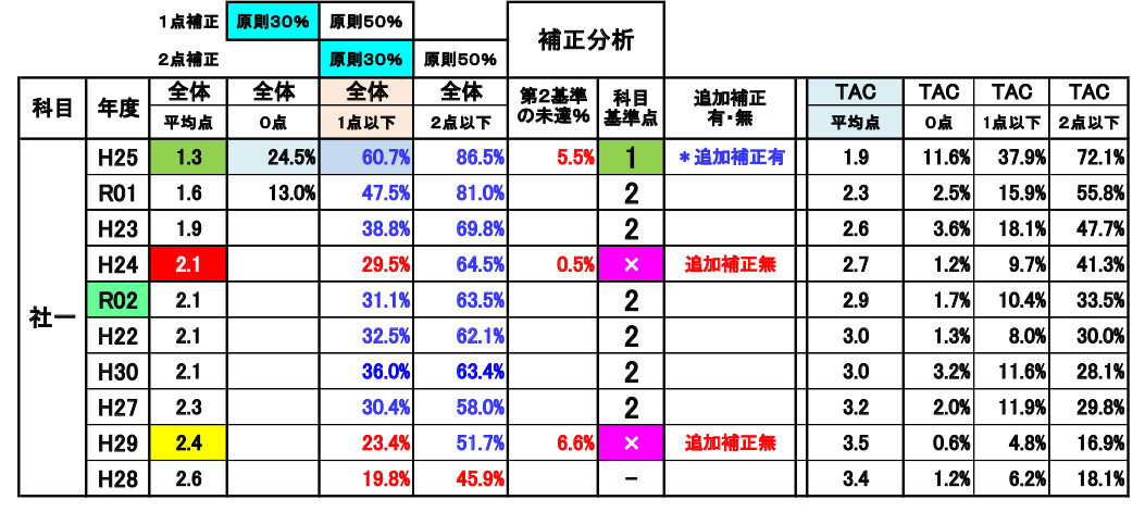 2) 選択補正(科目別)=補正候補抜粋 更新